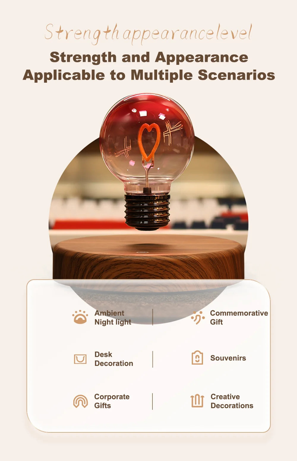 Levitating Heart-Shaped Bulb Lamp – A floating LED light bulb with a glowing heart filament, combining romantic design with futuristic magnetic levitation.